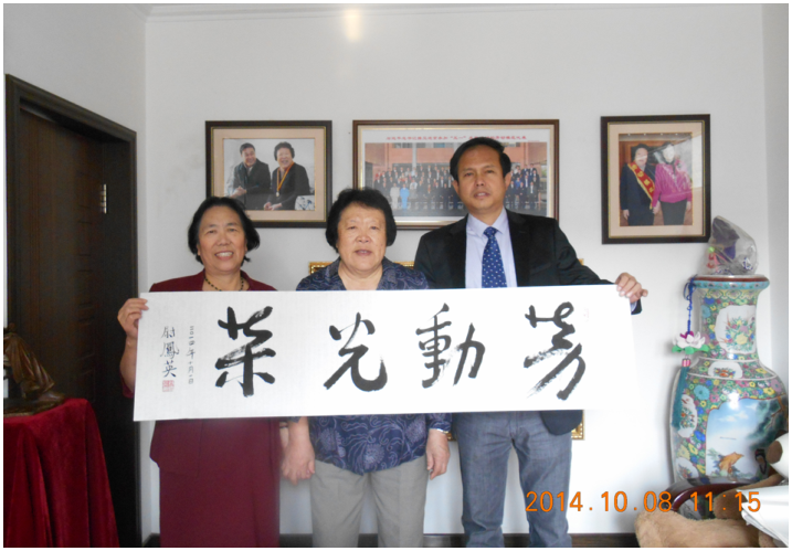 好工人尉鳳英大姐為楊光董事長(zhǎng)題字:“勞動(dòng)光榮”