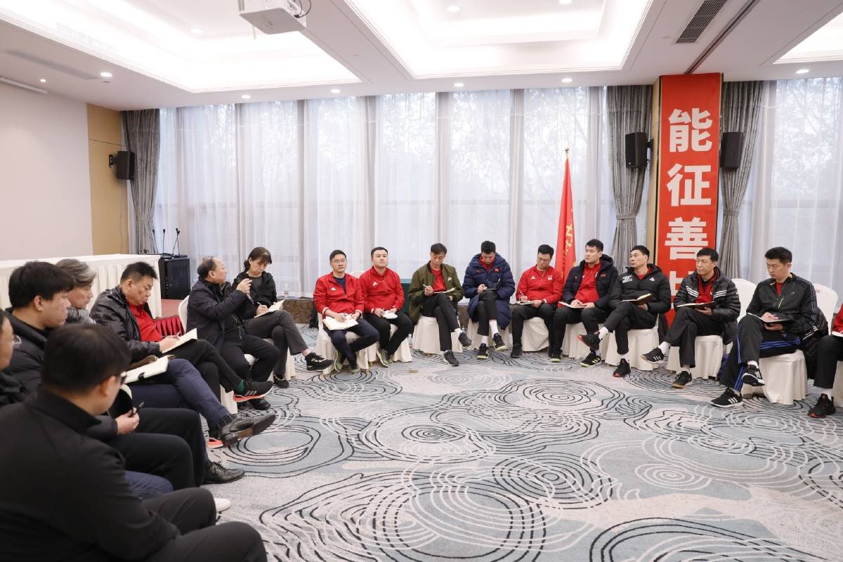 隨后,蔡斌作為訓練營訓練組長對訓練工作提出要求,強調通過訓練營提升隊伍的精、氣、神和思想政治教育,強抓體能訓練,用實際行動踐行不忘初心,牢記使命,為排球事業貢獻自己全部力量。他希望更多的運動員通過參加訓練營集訓開闊視野、增長見識。同時把國家隊優良的訓練作風和先進的訓練方法,女排精神的傳承帶回地方隊,促進地方隊的日常訓練,共同進步提高,從而夯實中國女排的人才基礎。