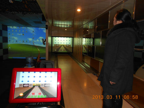 模擬保齡球,9萬元一道,新道板。一個道寬1.9米,兩道寬3.5米,共用一個回球系統。道長12-13米為好。