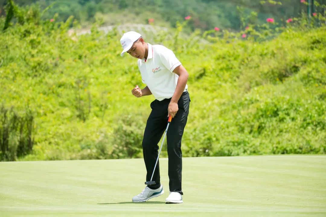 仝揚在2019賽季以優異表現一舉拿下匯豐青少年總決賽的冠軍,而今年他的目標是再奪下兩個冠軍。今日賽場上的他不驕不躁,共計抓到5只小鳥,吞下3個柏忌,領先同組種子選手周子勤3桿。而全天最漂亮的一只小鳥來自二號洞,三桿洞。仝揚在果嶺邊,距離旗桿25英尺,面對一個很大的斜坡,他的小球很激進,撞旗進洞。他說在那里增強了自信,讓他可以放開手去爭取佳績。
