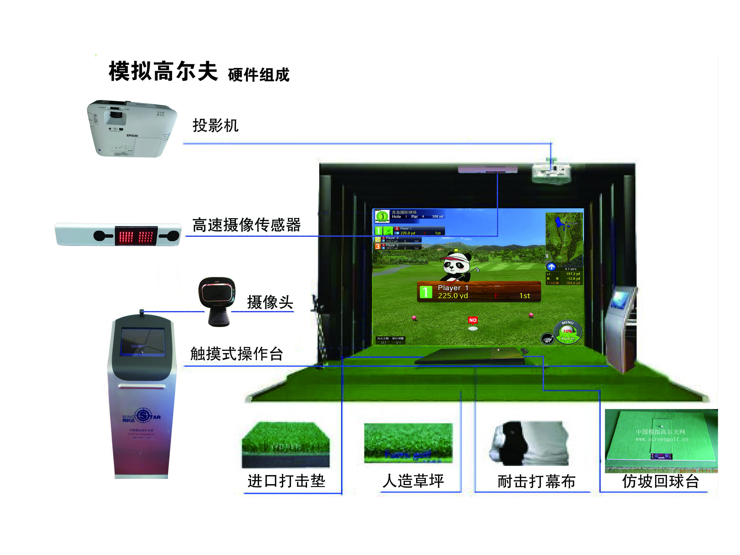 2.軟件(含國內外51個球場,逐步增加,3D逼真畫面)
