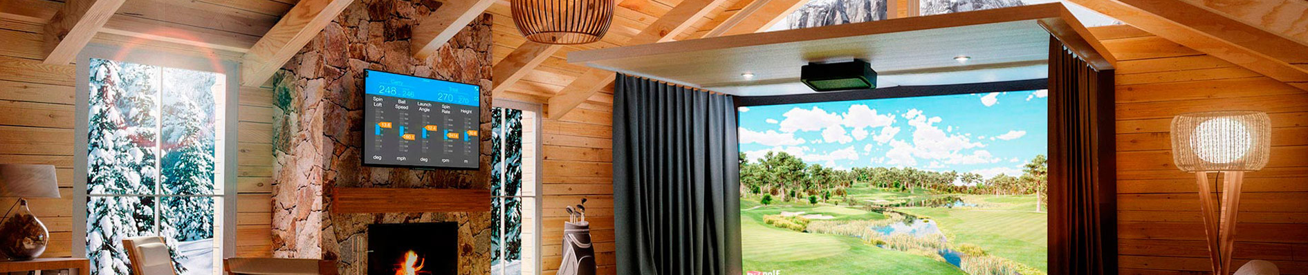 室內高爾夫模擬設備主要由兩部分組成:高爾夫球飛行參數測量部分,高爾夫球場三維模擬及顯示部分。高爾夫球飛行參數測量部分由雙道測量器和計算機中央控制器組成,兩部分合成為高爾夫測量部分,該部分完成高爾夫球飛行的初始速度、飛行仰角、偏角和球旋轉的測量。高爾夫球場三維模擬及顯示部分包括計算機圖形處理器、高清晰度投影儀和具有抗擊打和緩沖作用的幕布(標準3米×4米)組成,該部分完成高夫球場地和高爾夫球飛行過程的三維模擬顯示;在使用者將高爾夫球擊出后測量系統將高爾夫球進行動態參數分析,計算機圖形處理器根據該參數模擬動態的高爾夫球飛行軌跡,即時顯示在屏幕上,整個過程與擊打動作緊密相連,無任何停頓感,使用者感受到仿佛是在真實的高爾夫球場打球。